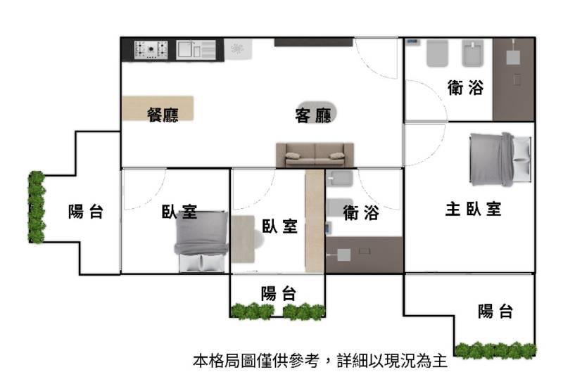 雙面採光:每間房間皆配有獨立陽台,讓自然光與微風充滿整個家。