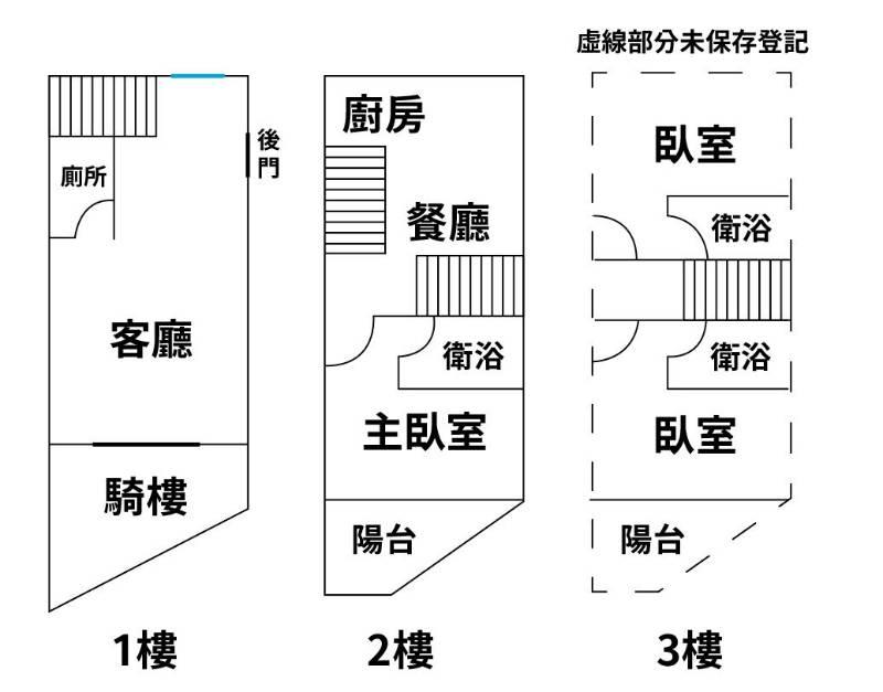 • ◎3樓及全棟後方空地都增建滿,未登記