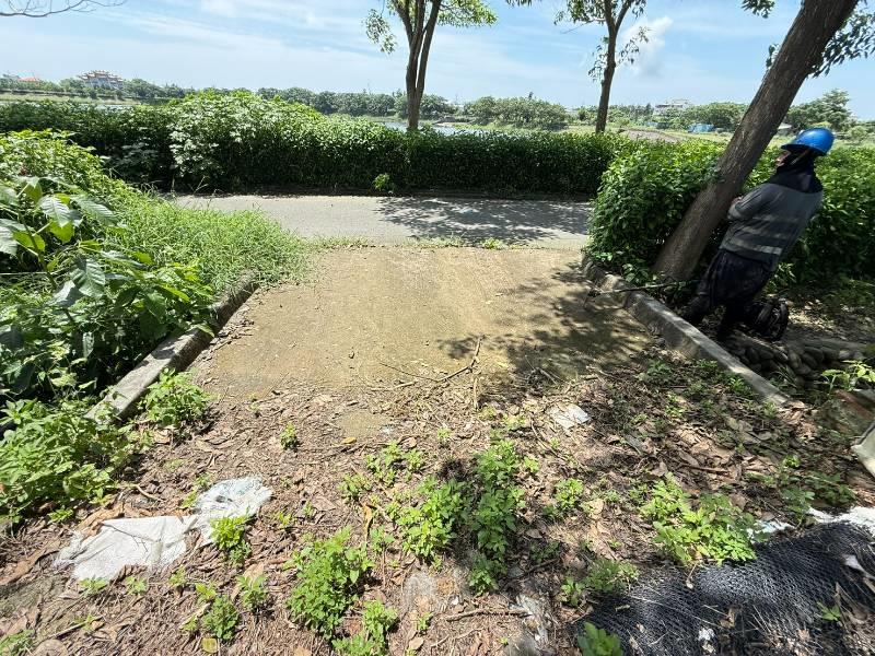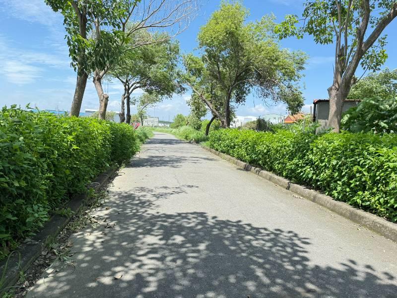 3.河堤步道口,環境清幽綠色步道很愜意
