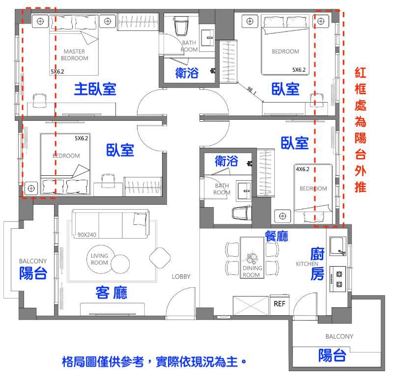 ◎前後陽台、雙衛浴乾溼分離,乾爽舒適。