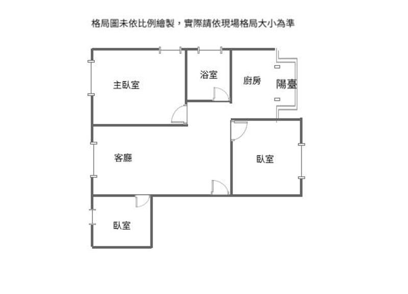 3房 2 廳 1 衛 1 陽