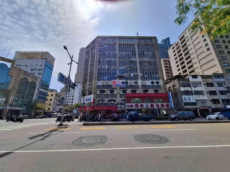 此商業辦公大樓建築面積達214.56坪,三角窗設計提供優質的自然採光,廣告效益明