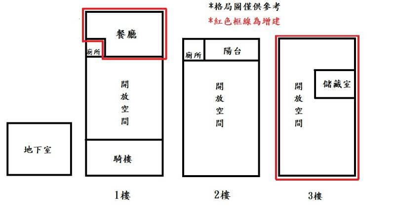 ◎屋況保持良好,一樓後方空地增建廚房與餐廳