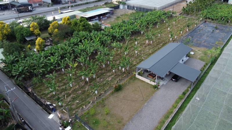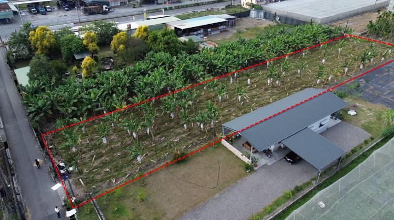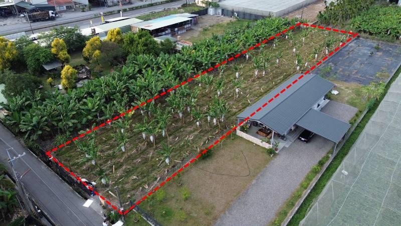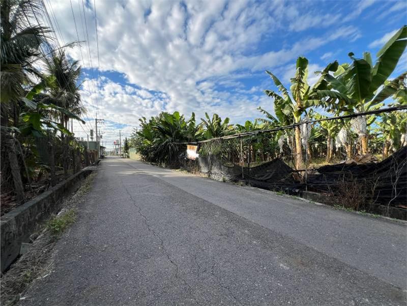屏東九如里港交流道。近趙壽山豬腳餛沌 6米路 方正漂亮農地 面寬19米,深97米現況種植香蕉 四周皆有人家環境好,吃豬腳用走的就會到 高屏二快已核定後勢可期 有地下水,沒有電