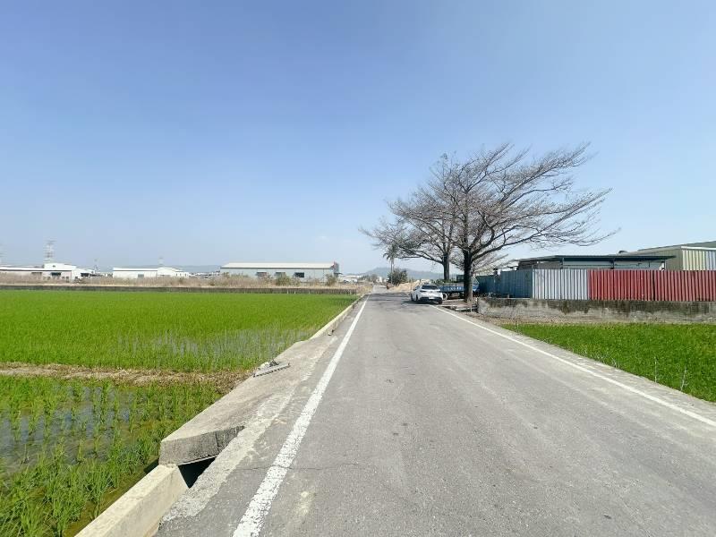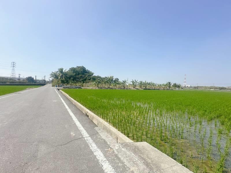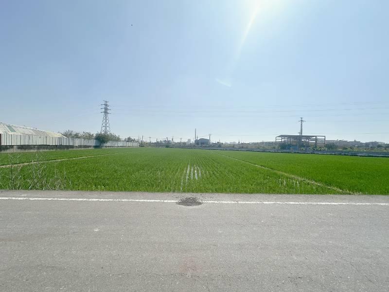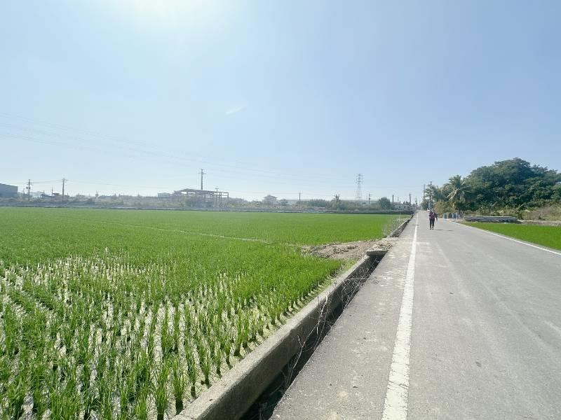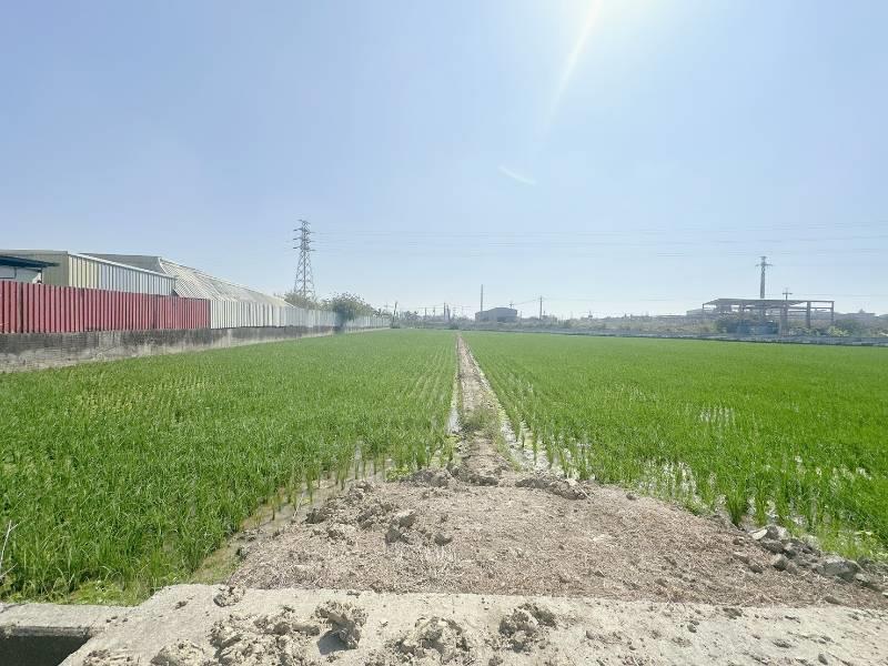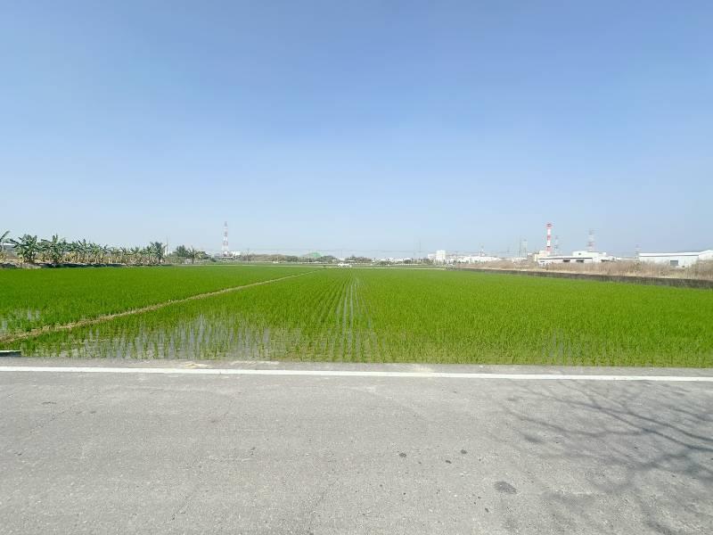 現況種植水稻 嘉興方正美農地 近國道1號,交通便利 近五甲尾社區,嘉興國小 旁邊有臨渠溝灌溉方便