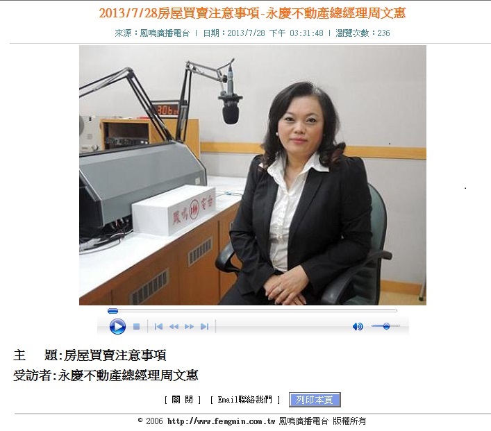 凱璿不動產事業總經理周文惠受邀鳳鳴電台訪問